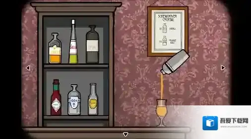 1、柜台视角:酒保乌鸦先生叫我们给坐在柜台边的鲍勃一杯酒,点击柜台上的调酒器,按照墙上的配方,分别点击伏特加和橙汁两次,点击两次调酒器后调出一杯(螺丝起子鸡尾酒),获得成就(螺丝刀),将酒交给鲍勃让他喝下后,他从嘴里吐出一把(螺丝刀);拿回鲍勃手里的(鸡尾酒杯),根据《生日》里从祖父上衣口袋里得到的配方,分别点击杜松子酒和汤尼水两次,点击两次调酒器后调出一杯(琴汤尼),获得成就(锈湖琴汤尼),将酒交给鲍勃让他喝下。