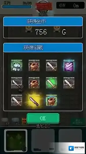 3、游戏结算时,在获得金币和宝藏界面,点击【OK】确认奖励,以便继续游戏或进行装备升级等操作,确保奖励生效。